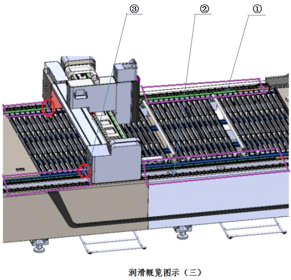1 Self-lubrication pump ② Y-axis upside guide slide block 1 ③ X-axis right side guide slide block 1